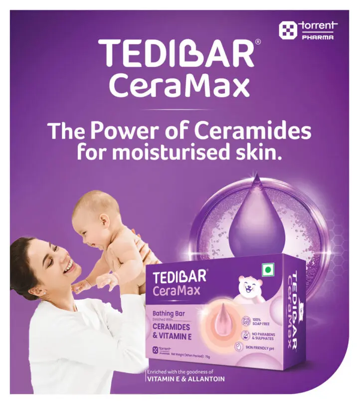 In the world of baby skincare, Tedibar CeraMax helps mark a gentle revolution. Specially designed to help support your baby’s still-developing skin barrier, this soap-free cleansing bar is enriched with Triple Ceramides (Ceramide 1, 3, and 6-II), Vitamin E, and Allantoin — a nourishing blend that helps in maintaining the skin barrier & making it soft & supple.